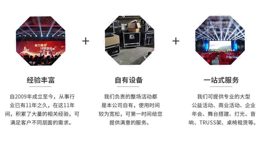 合肥東君廣告?zhèn)髅接邢薰?/span>,主要從事專業(yè)開工奠基、開業(yè)剪彩、新車發(fā)布會,會展會議布置、大型公益活動、開幕閉幕、店慶校慶、房產(chǎn)開盤、商業(yè)活動、運(yùn)動會、企業(yè)年會;節(jié)目演繹,舞臺搭建、燈光,音響、TRUSS架、桌椅租賃等各類活動物料租賃。我們?yōu)闈M足客戶不同層面的需求,憑借良好的管理體系和信用口碑、廣泛的社會合作關(guān)系體系及強(qiáng)有力的后備資源、多方面的配套服務(wù)隊伍、擁有先進(jìn)的活動設(shè)備和經(jīng)驗豐富的策劃設(shè)計人員,為客戶提供一站式的服務(wù)平臺。歡迎您來電咨詢:189-5602-4601(張總)